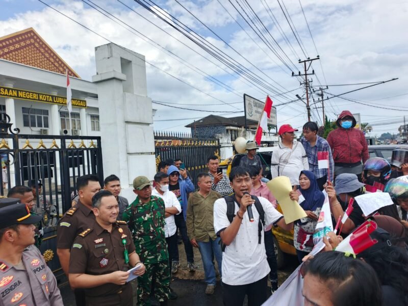 Koordinator aksi, Hidayat, secara tegas menyampaikan kritik kepada Kejaksaan Negeri Lubuklinggau, khususnya terkait penanganan perkara Undang-Undang Informasi dan Transaksi Elektronik (UU ITE) yang disebut sebagai kasus pertama yang mereka kawal hingga ke meja kejaksaan.